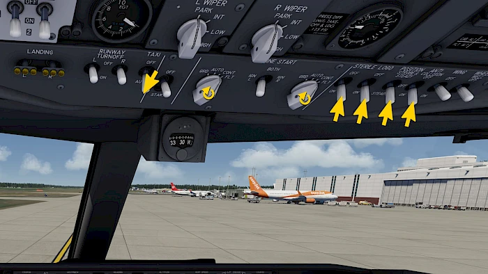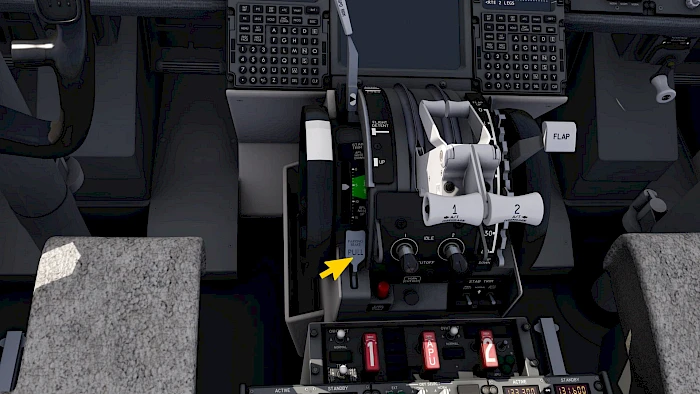 Because the runway 18C in EHAM is quite long and we need to vacate it towards the end anyway we can set up for a flap 30 approach with auto brake 2. With flap 30 instead of 40 we land a little bit faster but we also use less fuel on approach and we are quieter.