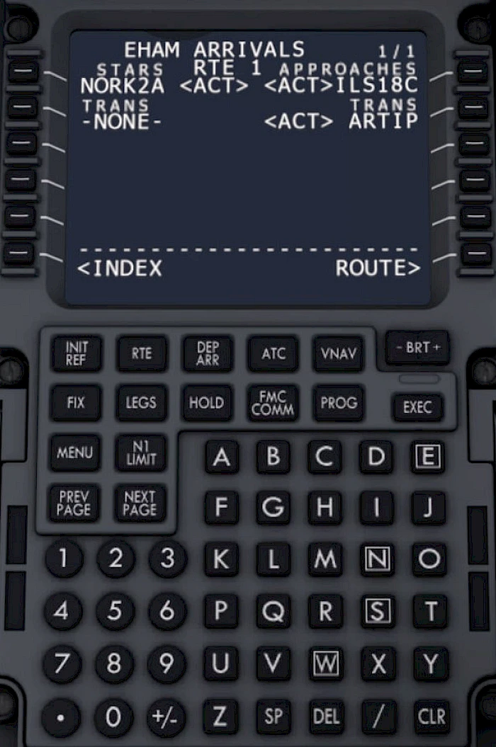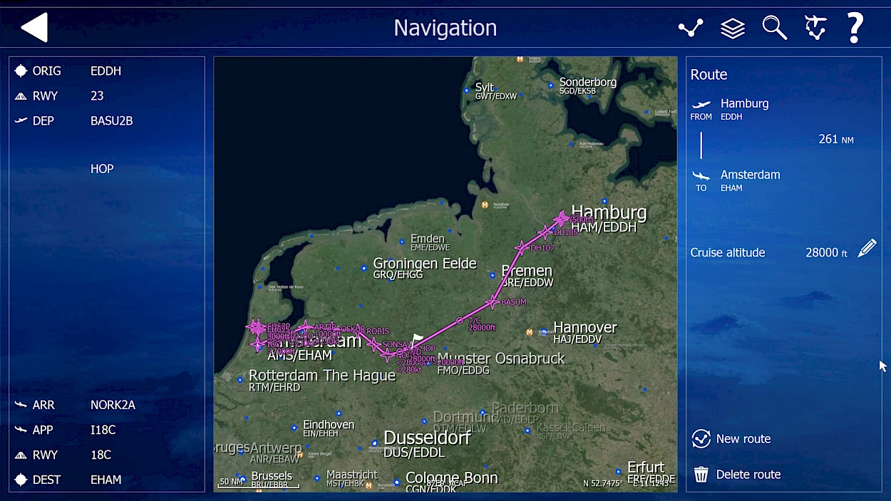 We’re flying along at 71% the speed of sound and get closer to the destination by the minute. Our plan is to fly the ILS 18C into EHAM and our route takes us over the airfield, then to the north where a procedure turn is made to intercept the localizer for the ILS 18C.