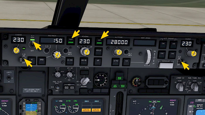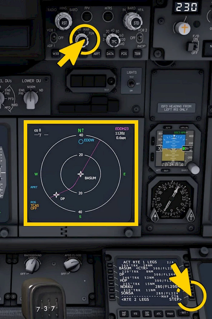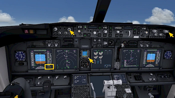 We could let the autopilot fly that with LNAV/VNAV but where is the fun in that :-) Instead we will break off the arrival and use manual heading vectors to position us for the approach. In this tutorial we’ll show you a few tricks that makes this easier.