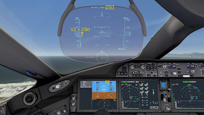 - Pitch for V2 + 20 knots, following TO/GA pitch commands