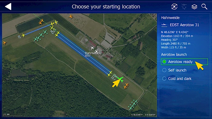 The glider is connected to a winch on the opposite end of the field with an 800-1500m long steel or synthetic cable. The winch pulls in the rope and the glider launches similar to a kite that you pull up by running into the wind. With this method you typically reach between 350-500m above the field elevation in about one minute. A the end of the launch the cable automatically detaches from the glider and falls down with a parachute. It is a very cost effective and quick method of launching a lot of gliders one after the other.