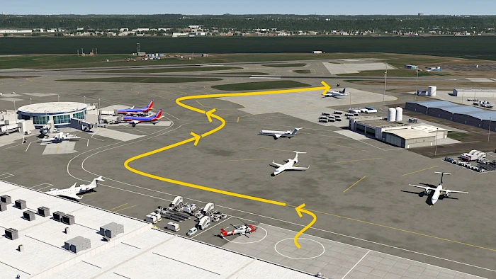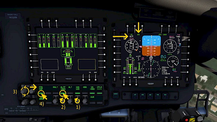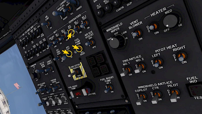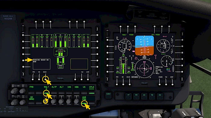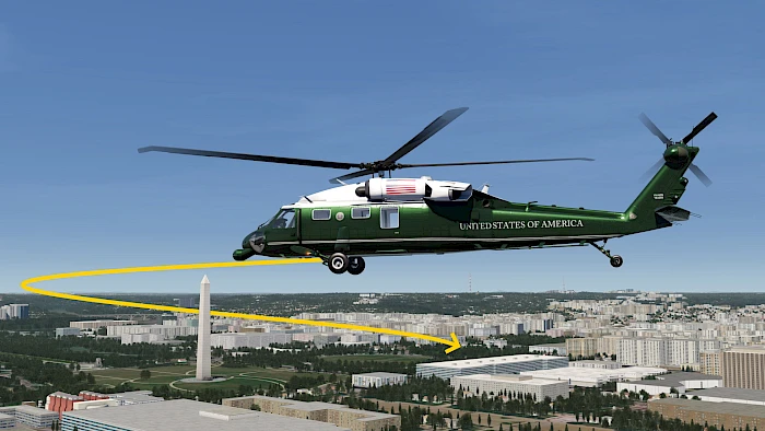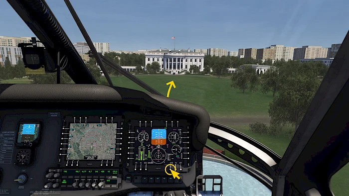 In this tutorial we’ll show you how to start the engines from a “cold and dark” preset, with all engines cold and electrical systems off and cockpit dark, just like for the first flight of the day. To start this tutorial please click on a parking position or helipad in the location menu and then select the cold and dark option. We’re starting our tutorial at the Washington Ronald Regan Airport in the south west apron. From the Ronald Regan Airport we’re going to fly north east before heading back west to the White House to drop off the President of the United States of America. This scenic route will take over the Capitol and Washington Monument.