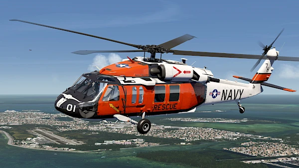 The Sikorsky UH-60 Black Hawk is a twin-turboshaft medium-lift utility helicopter which is simulated in great detail in Aerofly FS. It is used as a military helicopter, medical evacuation (MedEvac) and fire fighting. Civilian versions are designated as Sikorsky S-70.