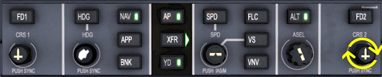 Note - FMS1 should be indicated on the primary flight display, in the legend left of the HSI rose. If FMS2 is now showing that is fine, to set it to FMS1 just press the “FMS” button again.