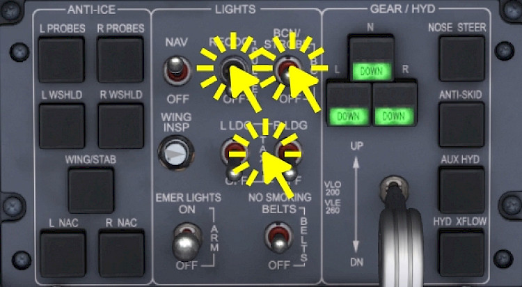4 Lower Front Panel LIGHTS LANDING LIGHTS ON