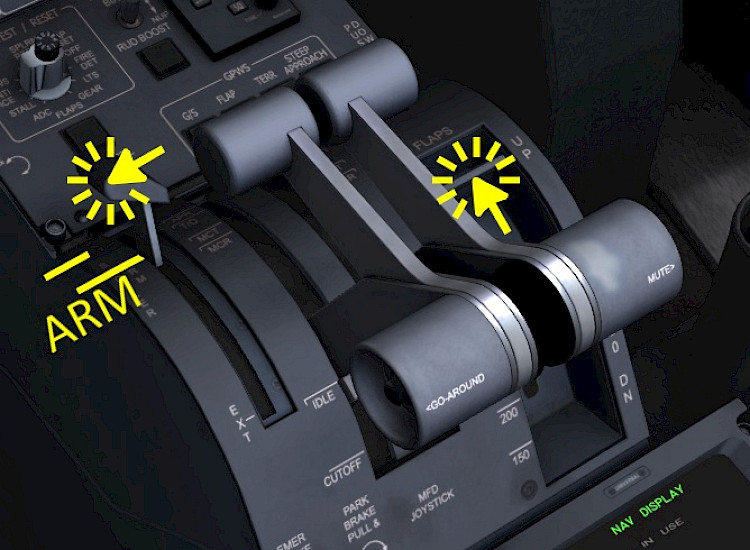 • Click the spoiler lever to set the spoilers to the armed position (if not already set)