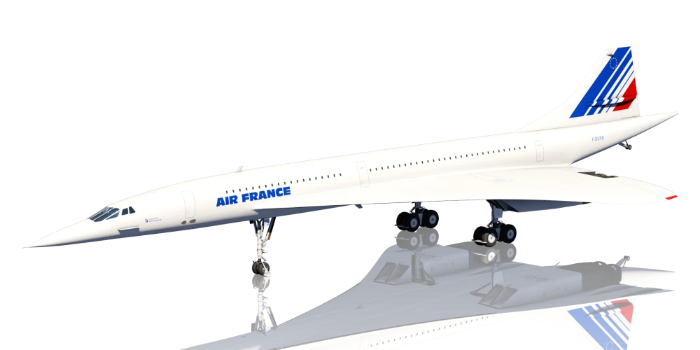 Die Aérospatiale/BAC Concorde ist ein britisch-französisches Überschall-Passagierflugzeug für bis zu 128 Passagiere. Sie flog zum ersten Mal 1969 und wurde 2003 außer Dienst gestellt. Mit einer Reisegeschwindigkeit doppelt so hoch wie die Schallgeschwindigkeit (Mach 2,02) konnte sie in nur 3,5 Stunden von New York nach London fliegen und flog dabei in Höhen bis 60.000ft. Der Deltaflügel des Flugzeugs ist leicht wiederzuerkennen und optimal für hohe Geschwindigkeiten, aber für Start und Landung musste der Anstellwinkel ungewöhnlich groß sein, weshalb die Nase des Flugzeugs zur besseren Sicht abgesenkt werden musste. Angetrieben wurde die Concorde von vier nachverbrennenden RR Olympus 593-Turbotriebwerken, die jeweils bis zu 169kN Schub erzeugten. Hohe Ticketpreise und Lärmschutzbedenken waren der Grund dafür, dass nur 20 Flugzeuge gebaut wurden.
