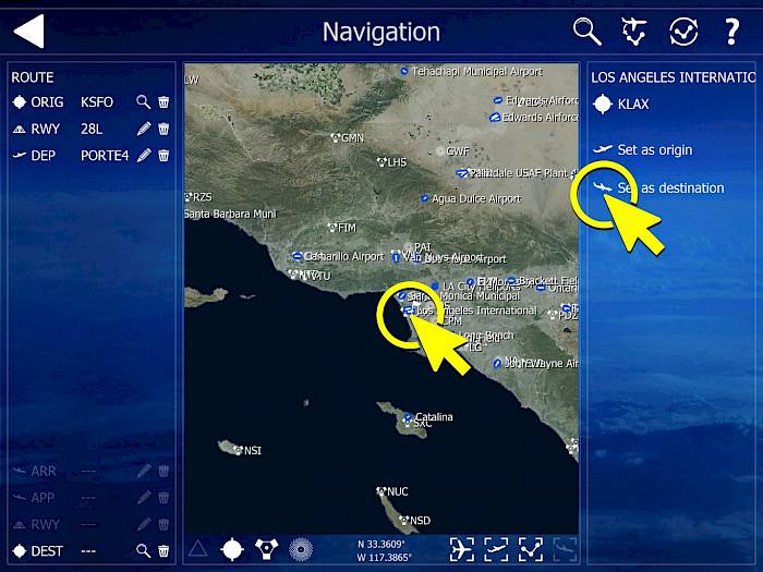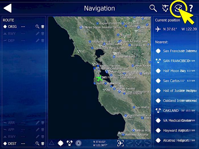 - Im Hauptmenü den Knopf “Navigation” anwählen, um den Flugroutenplaner zu öffnen.