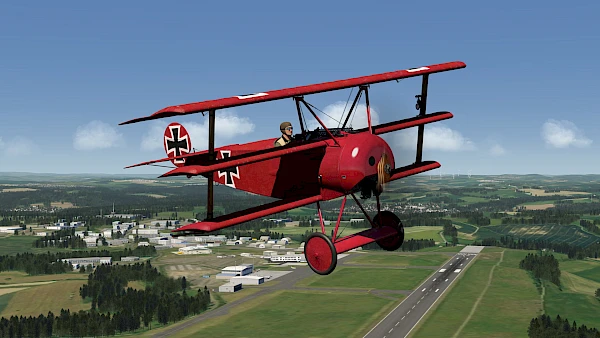 The Fokker Dr.I is a fighter aircraft of the First World War. It was used from 1917 and it achieved world fame by Baron Manfred von Richthofen (The Red Baron). Only 420 machines of this type were built. The Dr.I was very manoeuvrable and could rise quickly, but it also had to be well controlled. Often the pilots were overtaxed with the Dr.I and so it came to numerous crashes by pilot errors. The landing with this aircraft is particularly tricky. The narrow chassis and the high structure require extreme precision.
